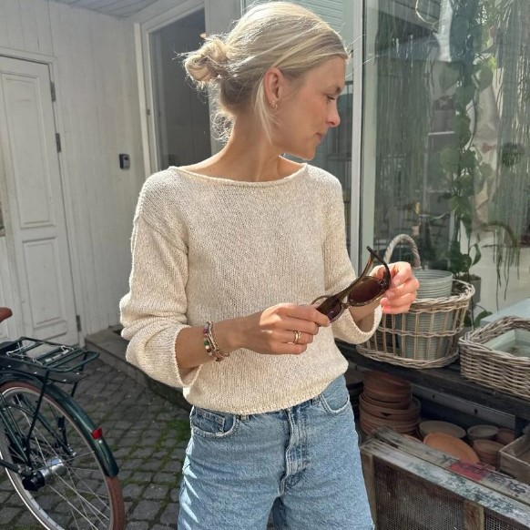 Materialer: 250 (250) 300 (300) 300-350 (350) 400 (400) 450 (500) g Palet fra Isager Yarn (50 g = 160 m) eller 350 (350) 400 (450) 450 (500) 550 (600) 650 (650) g Line fra Sandnes Garn (50 g = 110 m) strikkes sammen med 150 (150) 150 (150) 150 (150-200) 200 (200) 200 (200-250) g Trio 1 fra Isager Yarn (50 g = 350 m) eller 200 (200) 200 (250) 250 (250) 300 (300) 350 (350) g Tynn Line fra Sandnes Garn (50 g = 220 m)